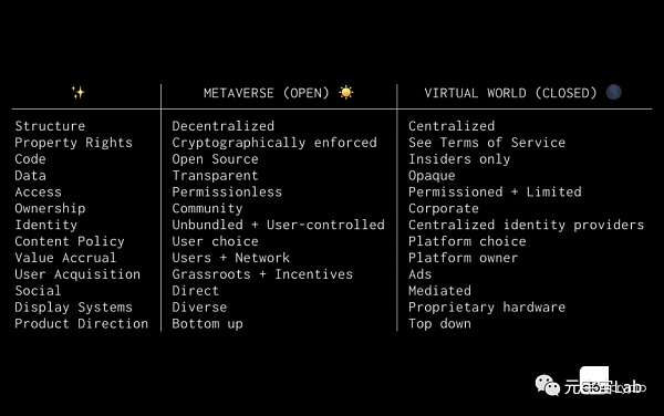 一個開放的元宇宙是去中心化的,允許用戶控制身份、強制執行產權、調整激勵措施,并確保用戶(而非平臺)獲得價值。除其他標準外,開放的元宇宙也是透明的、無需許可的、可互操作的和可組合的(其他人可以在元宇宙內和跨元宇宙自由構建)。