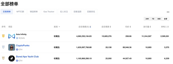 圖片:NFT專題榜單(交易榜單)