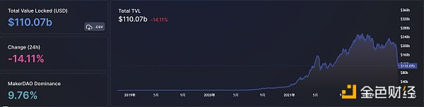 金色財經消息,據DeFiLIama數據顯示,當前全網DeFi鎖倉量1128.1億美元,24小時下降26.37%。目前,鎖倉量排名前5的公鏈分別為:ETH(712.8億美元)、BSC(84.5億美元)、Avalanche(51.7億美元)、Solana(40.4億美元)、Tron(39.7億美元)。