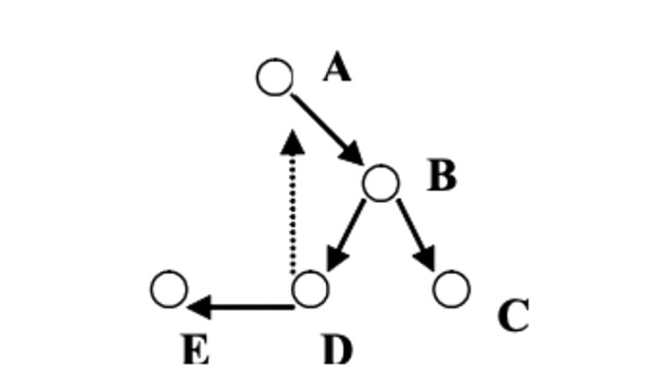 同樣的原因也適用于循環路徑。在下圖中,虛線創建了 A => B => D => A 的循環,損失減少到 E。