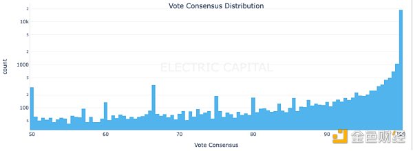 從結果上看,大約有 1000 個提案最終以低于 60% 的微弱優勢獲勝。