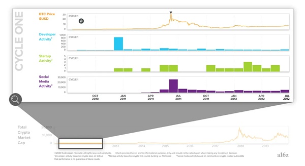 第一個加密貨幣周期在 2011 年達到峰值。在此之前,就算是加密貨幣愛好者也認為?Bitcoin?只是一個有趣的實驗,不太可能會產生實際的價值。