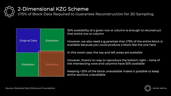 正因如此,攻擊者必須隱藏超過 50% 的區塊才能成功地欺騙數據可用性抽樣節點,使其認為數據是可用的,但實際上并不是。