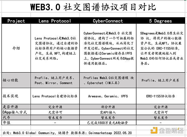 社交圖譜賽道中的熱門項目包括 CyberConnect, Lens Protocol,5 Degree 基本總結如下: