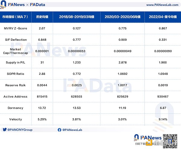 2018年8月至2019年3月和2020年3月至2020年6月這兩個時期內的盈虧籌碼比均值分別約為1.233和2.878,相比之下,當前期間的均值在市場低迷期的橫向比較中也處于較低水平了。