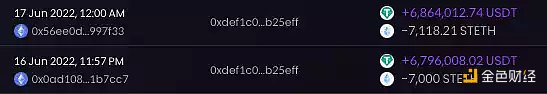 除了上述實體,我們還查看了在 6 月 1 日至 15 日期間有大量 stETH 交易的巨鯨錢包,并將范圍縮小到 7 個關鍵錢包。