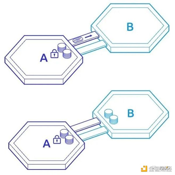 IBC采用「鎖定-鑄造」的資產跨鏈模型。如上圖,Zone A想要將資產跨鏈轉移到Zone B,需要鎖定代幣并將證明發送給Zone B,經驗證后,Zone B在本身鏈上鑄造等量的代幣。該過程中資產并非產生了實際轉移,而是在Zone A鎖定這筆資產,在Zone B重新鑄造了等額的同一資產。