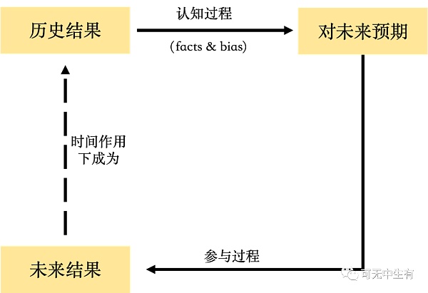 在上述的認知過程中,由于人類永遠不能完整地了解真實世界,所以會出現認知偏差,而這一偏差又會通過參與過程直接影響到下一個真實結果從而影響真實世界。當認知偏差的方向和真實結果的方向一致時,出現自我加強過程,帶來牛市的持續膨脹和熊市的死亡螺旋。