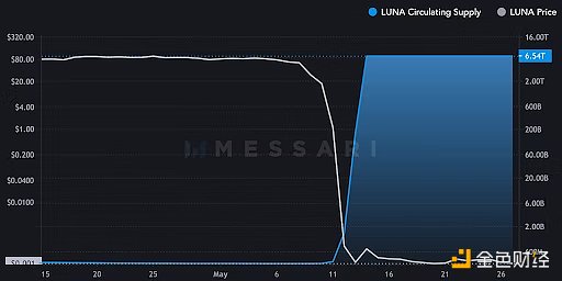 這時候,這場表演結束了。Luna 遭受了一場空前的惡性通貨膨脹,它的掛鉤完全崩潰了,并且其價值 400 億左右的市值僅在幾天內就損失殆盡。