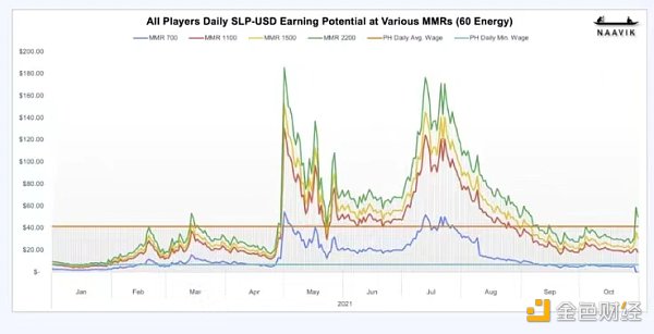 例如,在菲律賓,隨著 SLP 價格下跌,日收入從很高降到低于最低工資。