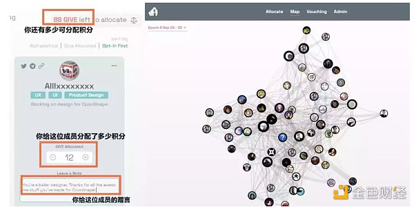 甚至 Coordinape 可以通過每個人分配記錄,展現出社區的關系網絡圖。