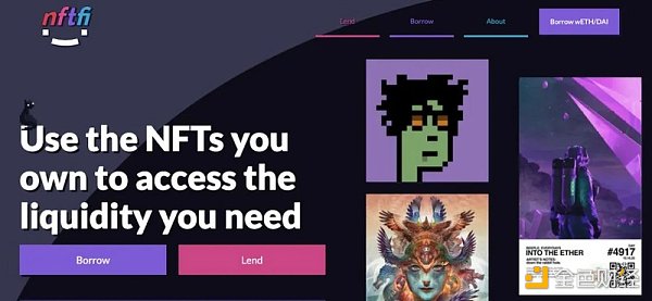 NFTFi是建立在NFT借貸協議MetaStreet之上的。它允許NFT所有者使用他們的NFT作為抵押來借入wETH或DAI,而貸方可以通過提供這些貸款來賺取利息。NFTFi的90天貸款要求年利率高達1000%,而較長期限貸款的平均年利率為90%。自2020年5月成立以來(截至2022年7月5日),該公司已處理了13363筆貸款,金額為2.17億美元。NFTFi對成功貸款(不包括違約貸款)的貸款人收取5%的利息收入。一些抵押NFT包括打包的Crypto Punks(約占貸款的29%)和BAYC(23%)。