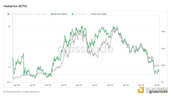 查看礦工盈利能力的一種方法是算力價格。(礦工收入/算力價格)