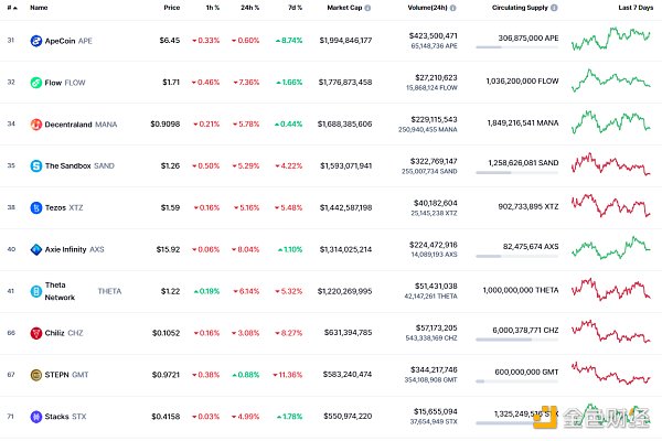 NFT總市值、市值排名前十項目 數據來源:Coinmarketcap
