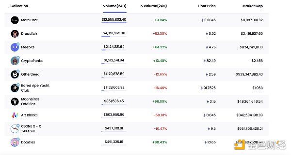 24小時內銷售漲幅前十的NFT 數據來源:NFTGO