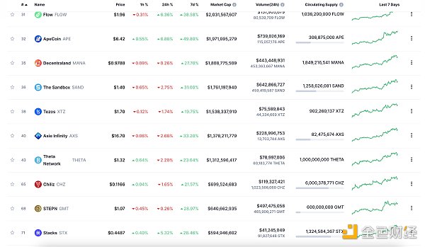 NFT總市值、市值排名前十項目 數據來源:Coinmarketcap