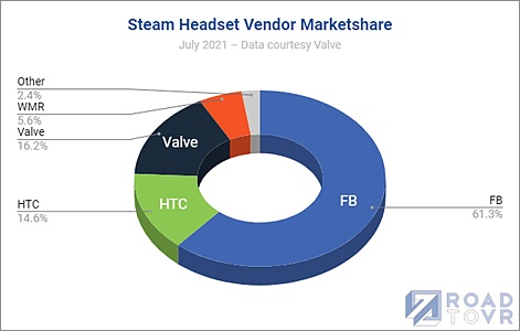 SteamVR平臺上的硬件百分比(從2020年8月至2021年7月之間)