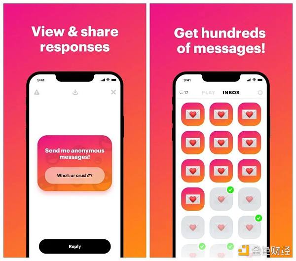 曾經 Secret 的成功發展引領了全球匿名社交軟件的風潮,很快在中國市場也催生了不少同種匿名模式的試水者,包括之前的秘密、匿名和嗶嗶等。現在比較流行的也有很多,比如與 NGL 很相似的匿名問題 Tape 提問箱,借助該平臺,用戶創建個人的提問箱鏈接并分享到社交平臺,好友以匿名身份發起提問。Tape 提問箱在微信、QQ 等主流社交平臺掀起刷屏熱潮,成為年輕人的日常社交活動之一。