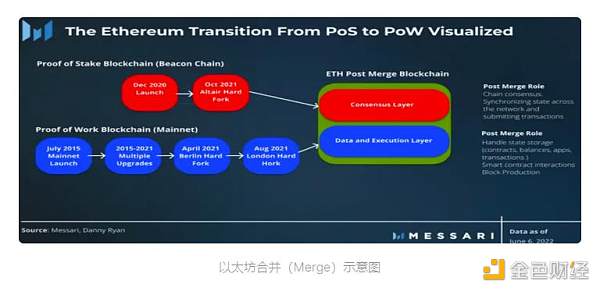 以太坊合并(The Merge)的是以太坊將采取PoS(權益證明)替代 PoW(工作量證明)的共識機制。PoW 和PoS 都是實現共識的不同手段。