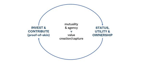 代幣化社區的核心理念和承諾是創造一個自我維持和自我強化的飛輪,成員參與游戲以獲得社會地位、獲取效用和/或獲得份額,這反過來又會產生激勵和網絡效應讓成員投資和貢獻更多。互動性和能動性是動力,有機燃料使飛輪保持轟鳴。互惠性確保成員在共生互惠的基礎上對共同的目標和共享的價值觀產生認同感,這反過來又是成員通過積極參與和切實為社區做出貢獻來承諾代理的先決條件。
