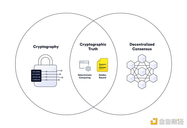 密碼真理(cryptographic truth)結合了密碼學和去中心化的激勵模式,在分布式實體和確定性的計算應用下生成“黃金記錄”。
