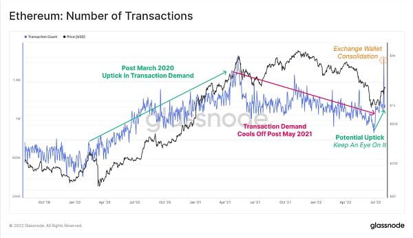自 2021 年 5 月的拋售以來,以太坊交易需求一直在逐漸下降,最近幾周只有短暫的活動爆發。但這種爆發趨勢如果可以繼續走高,那可能預示著以太坊的上漲趨勢將會得以延續。