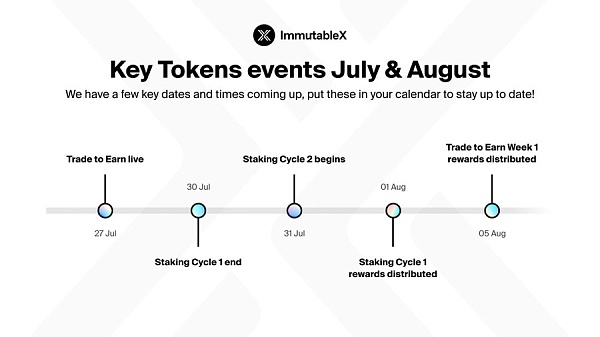 用于激勵用戶的代幣發放仍為不定期舉行。近期,IMX發起了一輪新的激勵活動,7月26日開始進行交易挖礦活動,另外有兩輪質押挖礦活動同步進行。