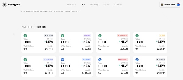 目前,Stargate Finance 還處于未開發完成的階段,只上線了七條公鏈的穩定幣跨鏈,根據官方消息,后續還會支持cosmos、luna等其他公鏈。并且,STG質押功能還未開放,目前產品支持跨鏈、添加流動池、質押功能。質押穩定幣的年化收益基本在20%上下,其中polygon鏈上的USDT質押回報率最高。