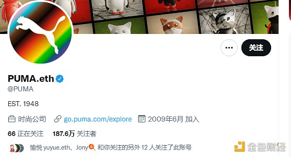 其中,有一個不可忽略的重要合作伙伴的標志是,每一個把 twitter 用戶名改為 .eth 后綴的用戶。其中包括 crypto twitter 大V、普通散戶、VC、項目方、甚至是傳統品牌如PUMA。
