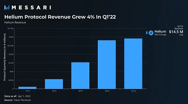 Token Terminal 顯示 Helium 在 2022 年第一季度的收入為 1450 萬美元,但 Web3 Index 顯示同期的收入為2.6萬美元。