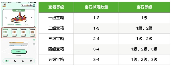 一綠兩灰:一綠兩灰,賬號擁有5點能量,每天可運動25分鐘。綠鞋可以升到19或者28級,其余的不用管等級和屬性。值得注意的是,這種配置在單次消耗5點能量的情況下,可能會獲得一級寶箱。