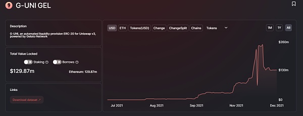 尤其值得一提的是,Maker在今年9月21日支持將G-UNI的DAI-USDC LP作為其抵押物,這是Maker支持的首個Uniswap V3的LP,也說明了Maker對G-UNI的認可。
