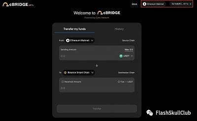 使用cBridge完成跨鏈的具體操作如下:(以從Arbitrum跨鏈至BSC為例)