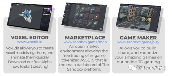 Sandbox 區塊鏈游戲平臺由三個集成產品組成,共同為用戶生成內容 (UGC) 制作提供全面的體驗。合并后的產品使用戶能夠通過區塊鏈和智能合約為其用戶創建的內容確保版權所有權,從而進一步使用戶受益。