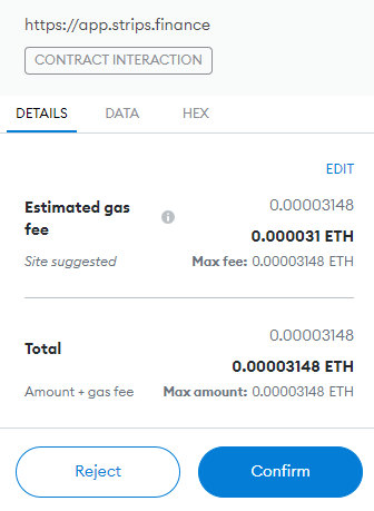 在您的 web3 錢包上單擊確認。您現在已經領取了您的 STRP 獎勵!