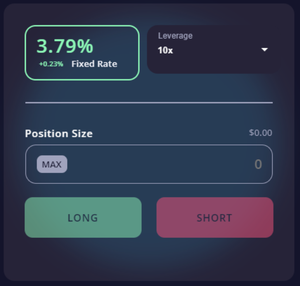 固定匯率百分比顯示入場時的市場匯率。Notional 顯示進入時的頭寸數量。綠色向上箭頭顯示輸入的多頭頭寸。紅色向下箭頭顯示輸入的空頭頭寸。