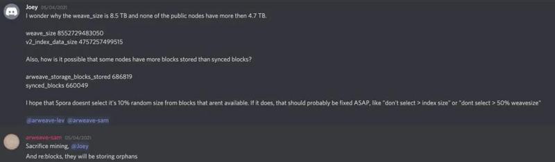 Arweave 團隊發現礦工的 Sacrifice Mining 作弊行為:https://twitter.com/samecwilliams/status/1374062282817290247?s=20