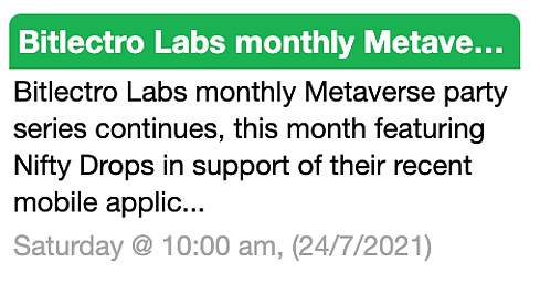 最近的一條顯示在2021年7月24號,會有一場Bitlectro Labs每月定期舉辦的聯合Nfity Drops一同發布NFT的活動。