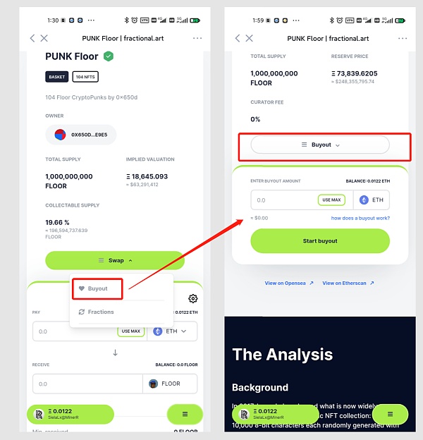 也就是說,當個人或團體存入足夠的 ETH 以達到或超過Valut確定的拍賣底價時,Valut的拍賣收購就啟動了,如果這個收購成功,Valut的所有 NFT 碎片代幣的持有者便可將代幣兌換成 ETH,盈利出局。