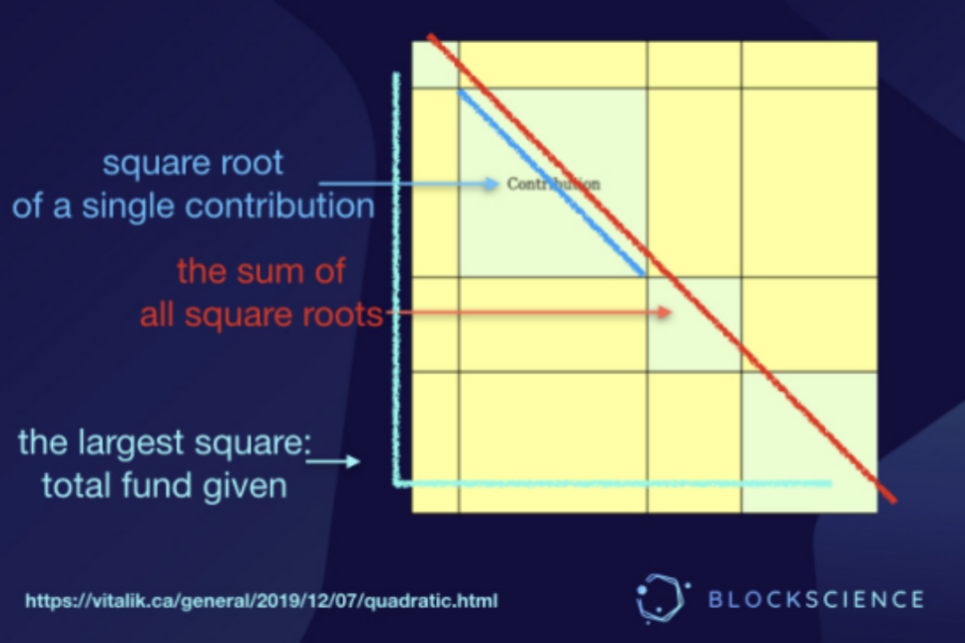 2018年,Vilatik, Zoe, 和 Glen為這個問題提出了一個新的解決方案:二次方融資(Quadratic funding)。它有一種算法,將贊助者的資金與小額捐助者進行匹配(從而獲得不相稱的獎勵),因為小額捐助者作為一個整體可能對哪些開源項目對社區最有利有更大的集體洞察力。