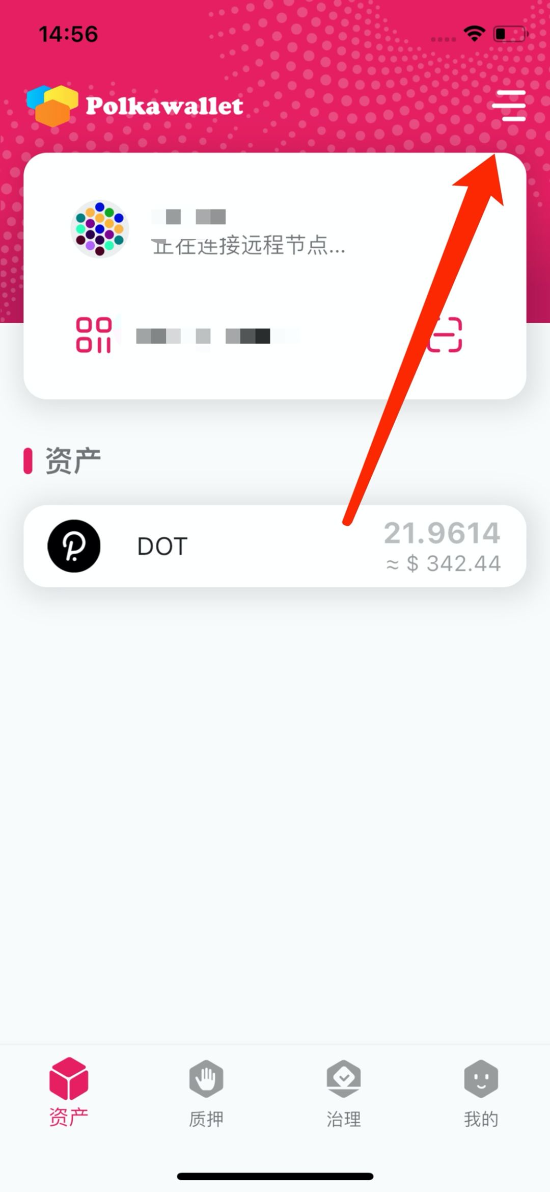 3、點擊右上角切換網絡 icon,點擊 Karura 網絡按鈕即可,若鏈接失敗可在「設置-遠程節點」切換不同節點,或切換手機網絡即可