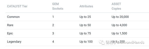 CATALYST:即催化等級,共分為四種級別,每個資產都將被定義到某一個級別,級別越高的資產具備更強的稀缺性。