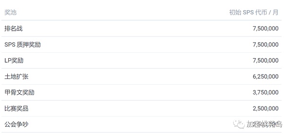 另外,為了促進游戲的長遠持續發展,官方在初期會投入眾多SPS在游戲中獎勵給玩家,初期將保持3750萬個/月的投放,具體分配規則如下: