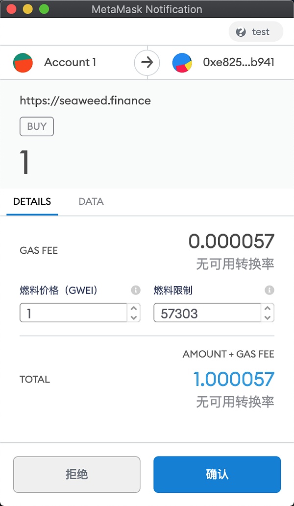 擴展程序MetaMask會自動彈出對話框,請您確認認購明細,如下:
