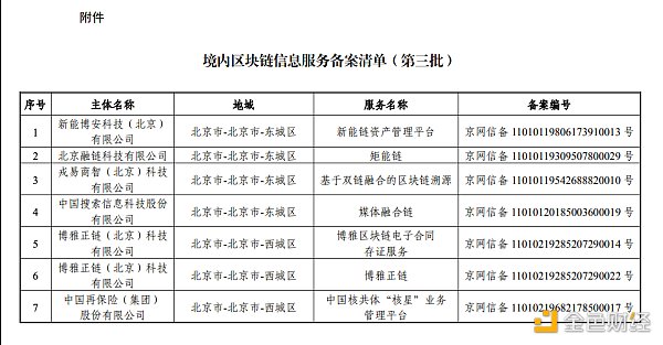 此外,螞蟻區塊鏈的“司法區塊鏈”,度小滿的“度小滿綠洲”也獲得備案。