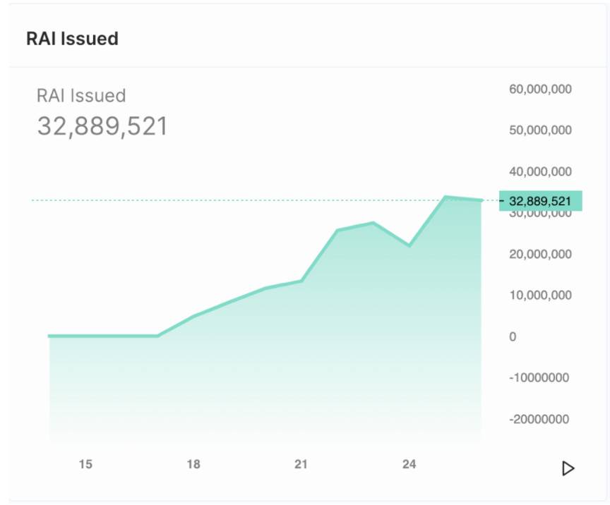 自從 RAI 以太坊主網順利上線之后,第一周就鎖定了價值 2.5 億美元的 ETH,目前已發行超過 3000 萬枚 RAI。如果您想了解更多 RAI 的實時指標數據,可以在 此處 查看。