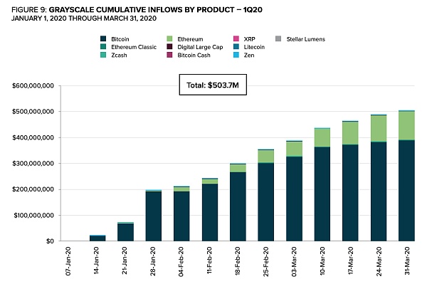 2、盡管2020年第一季度加密貨幣市場劇烈波動,但投資者投向Grayscale產品的資金達到5.037億美元,是Grayscale有史以來最強勁的一個季度。
