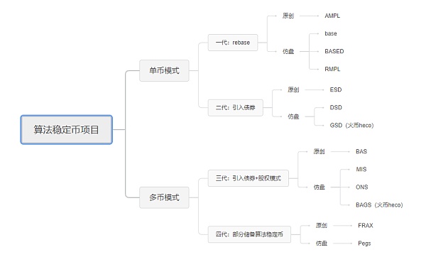 XRP/HKD-3.28%算法穩定幣可以分為single-token 和 multi-token 兩種模型。