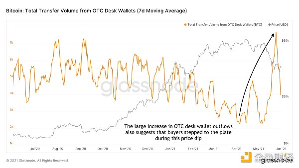在這次下跌期間,場外交易 (OTC) 也出現了大量比特幣流出(圖 17)。這些場外交易促進了希望在不影響市場的情況下買賣比特幣的大型實體之間的交易。