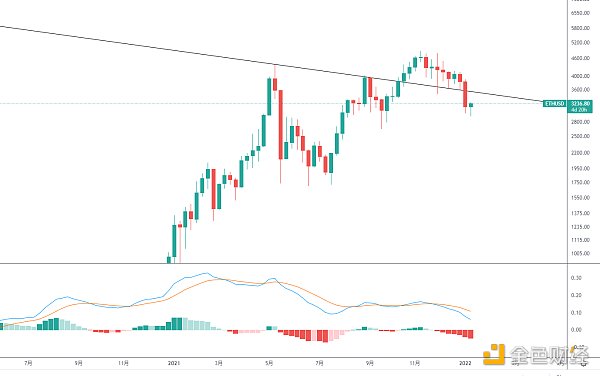 4小時暫時在第一阻力區3250-3300受阻,調整量能有限,預計整理后繼續向上概率大,主要壓力在3450-3550美金,前期3000下方低吸的可以考慮高拋,近期走勢屬于周線破位在回抽的狀態,反彈后有再次探底的可能。